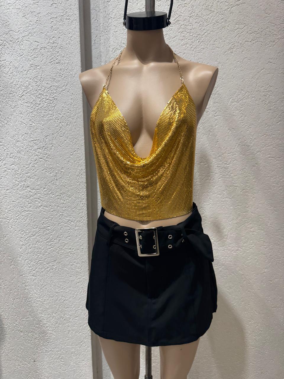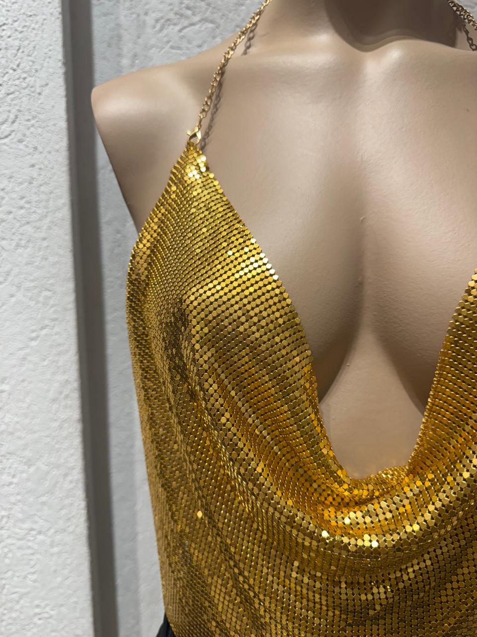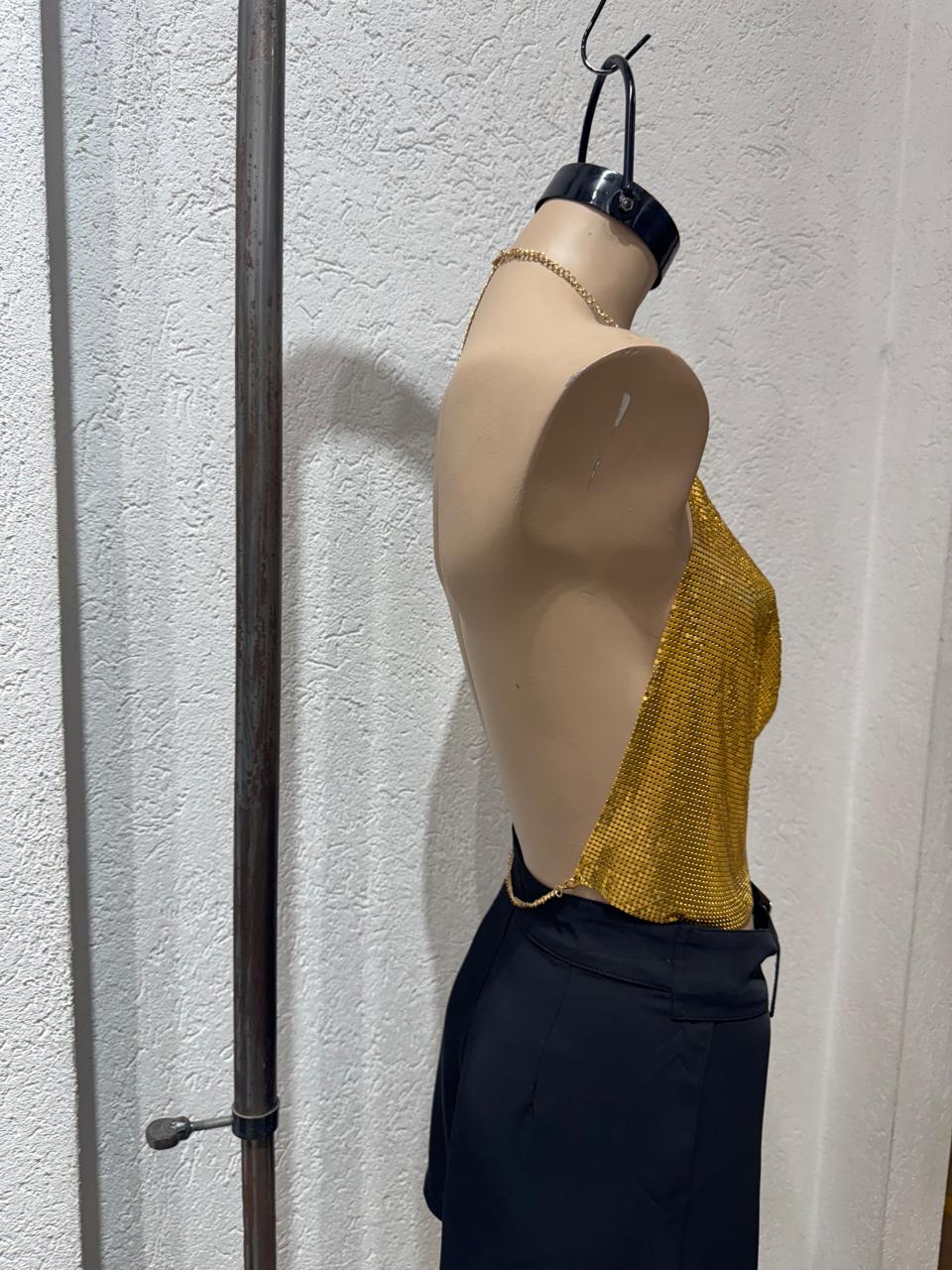 Top buche con espalda abierta y cadenas en el cuello y cintura