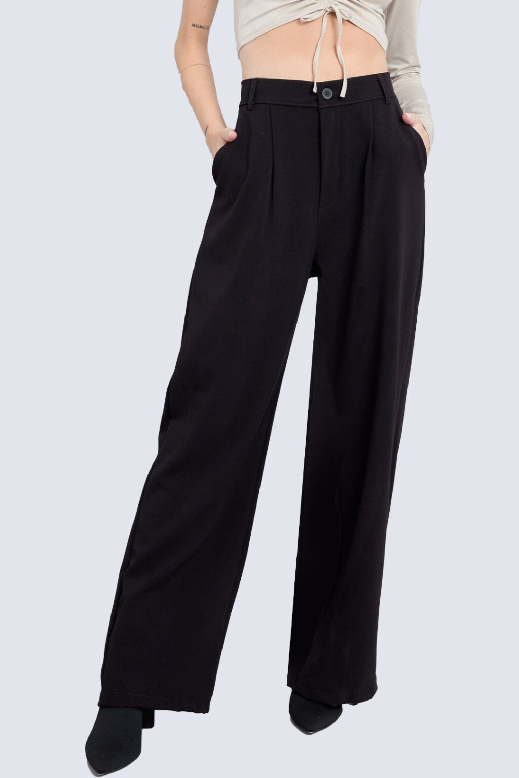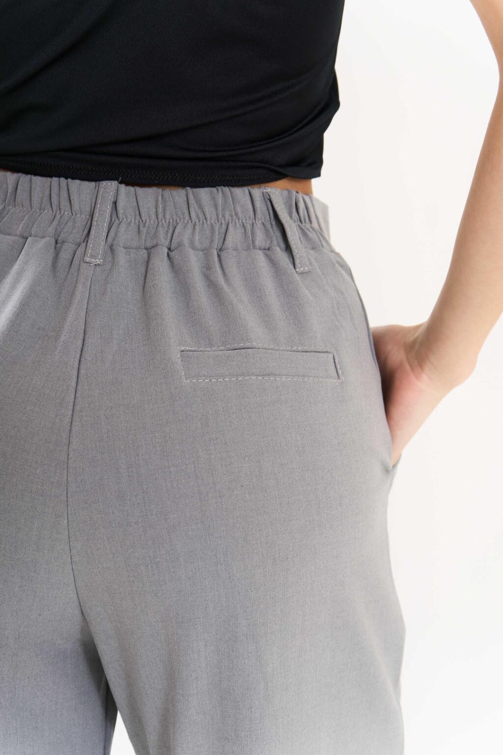 (considerar que tiene elástico únicamente en la parte trasera de la cintura, botón y cierre)