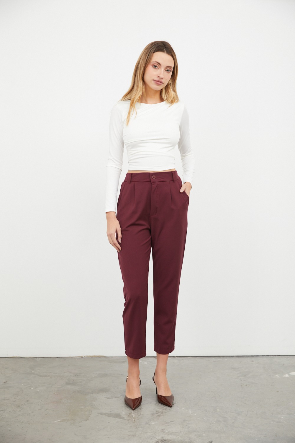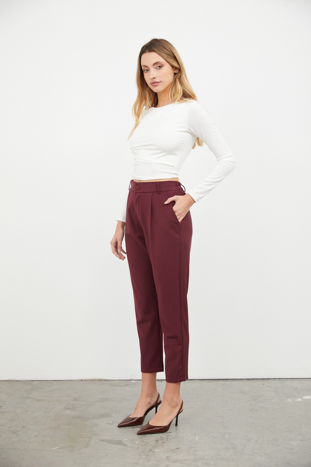 Bolsillos, pasacinto, cierre y botón. Pinzas.