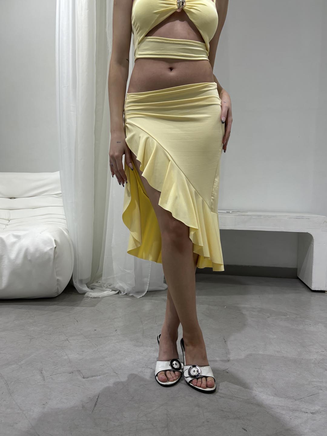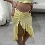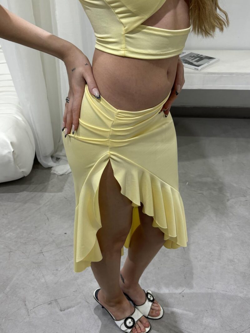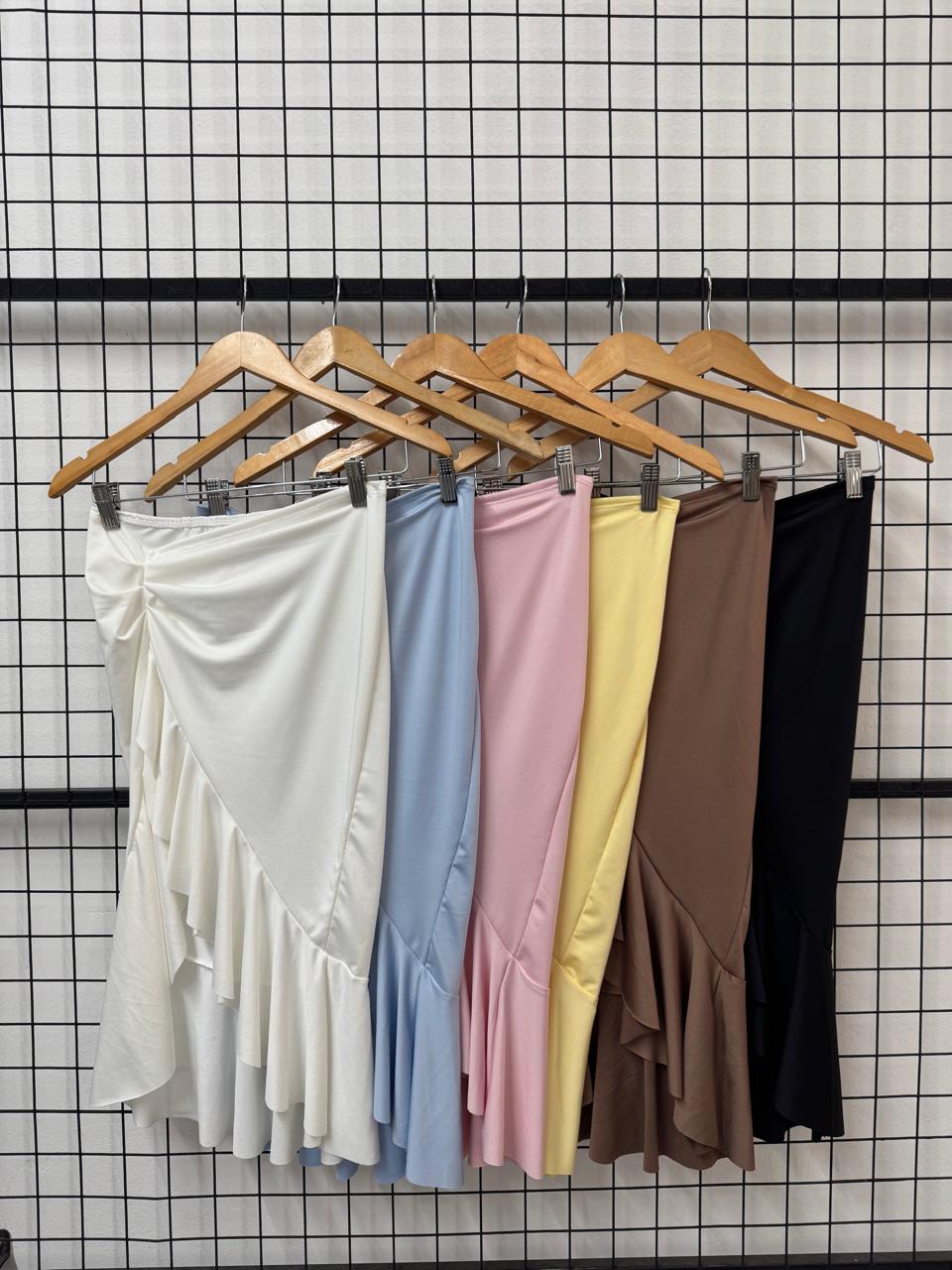 Pollera larga con tajo, cableado y voladito