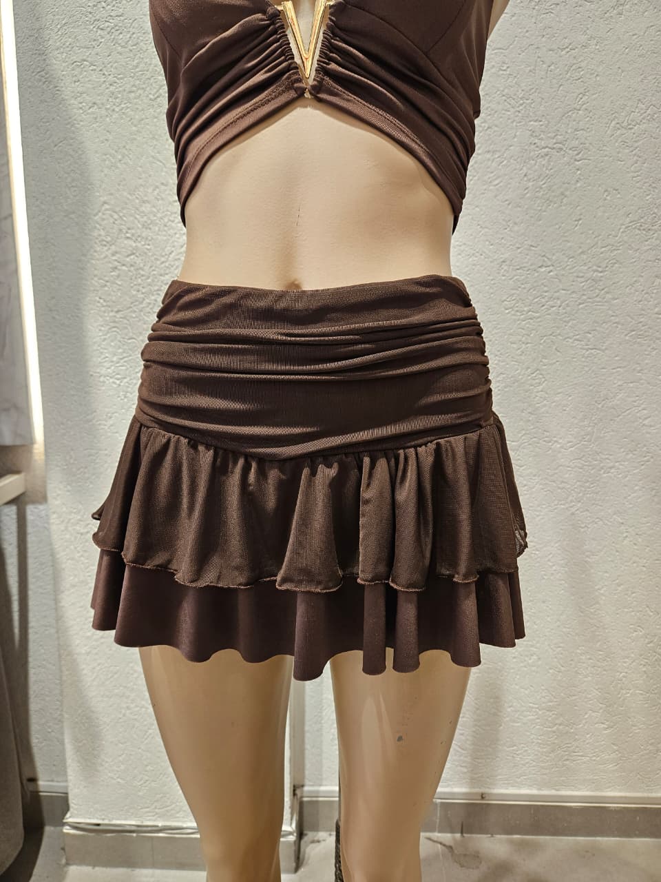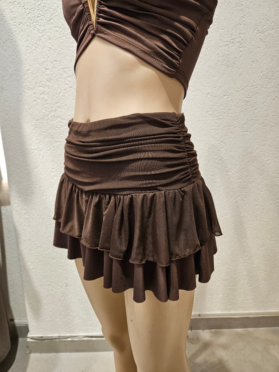 Pollera con short con fruncidos y voladitos