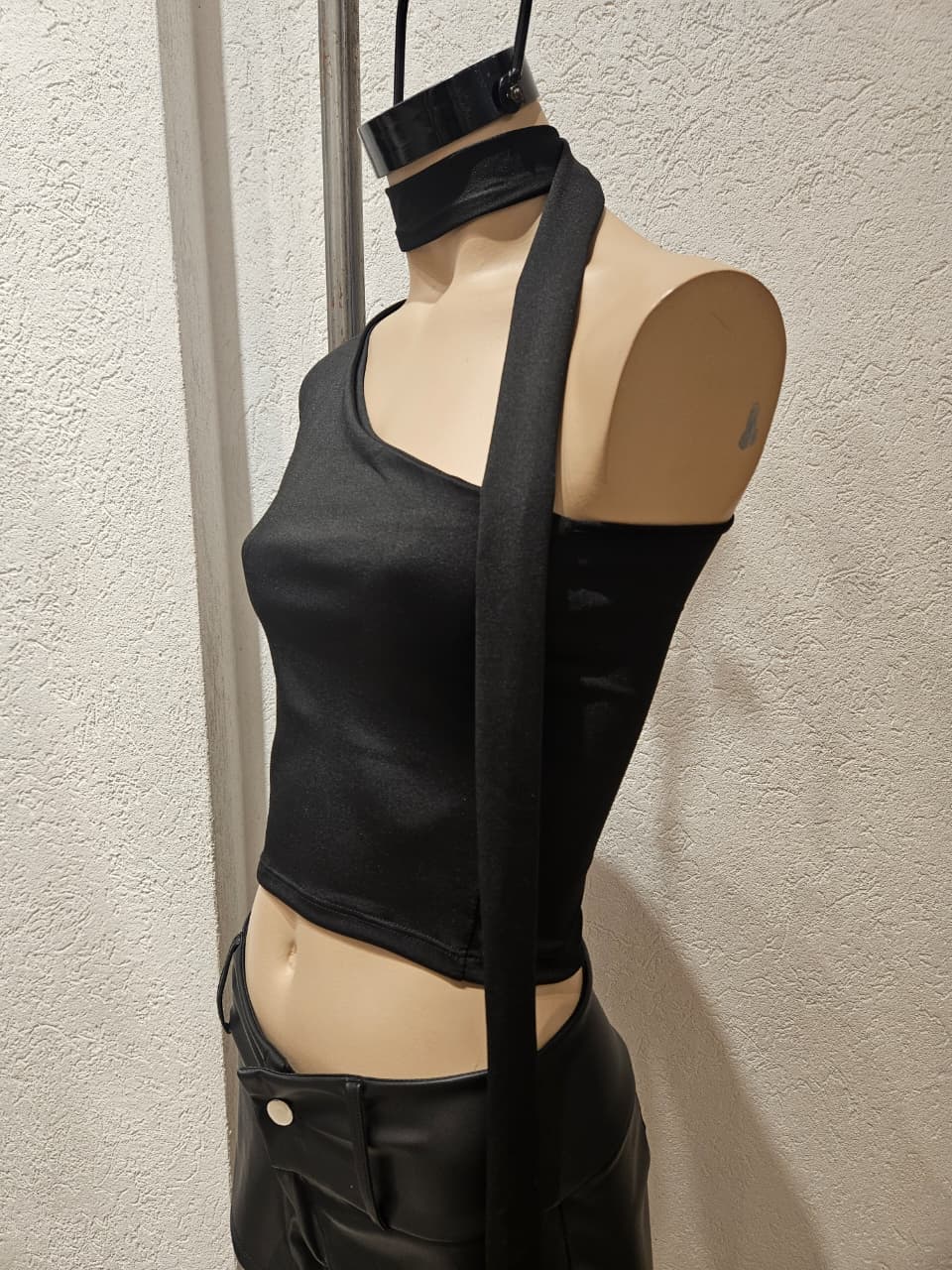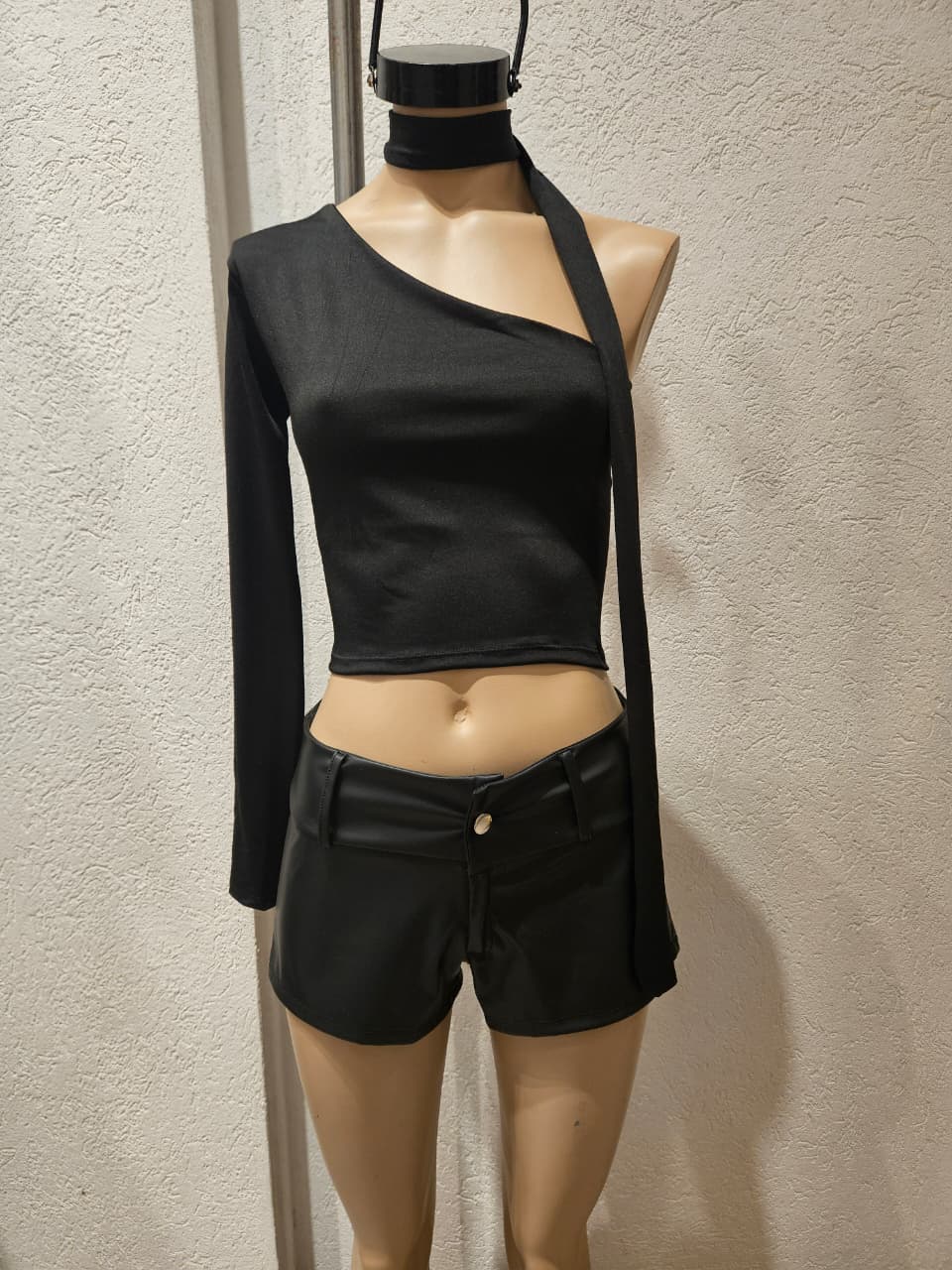 Remera con 1 manga larga y cuello corbatín
