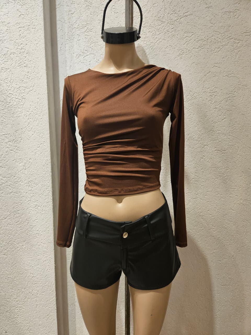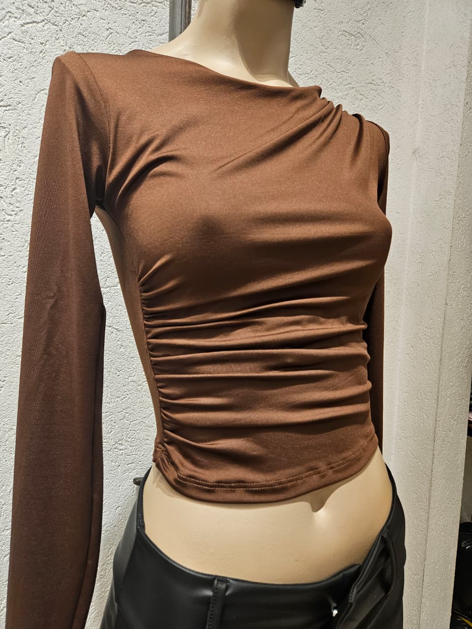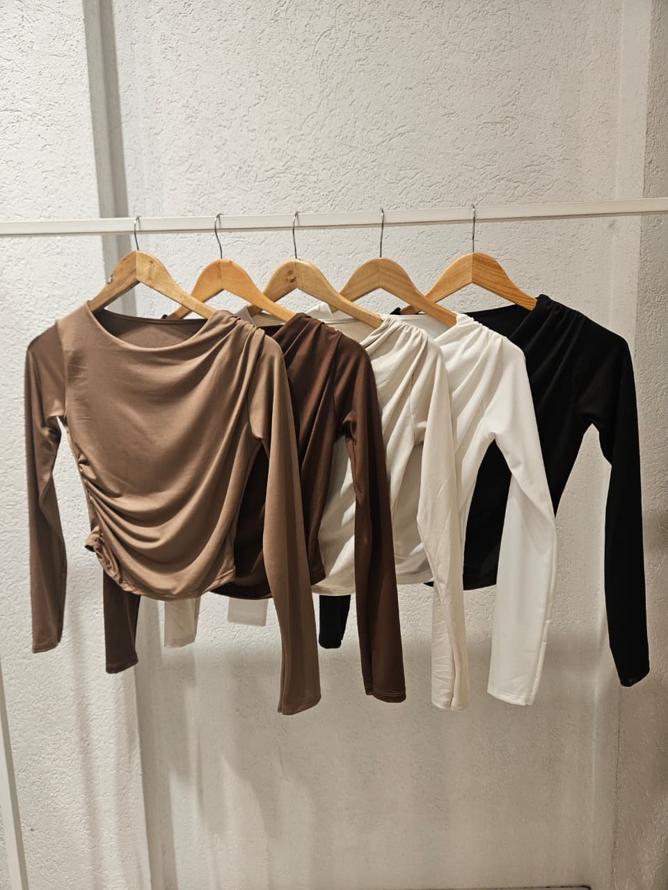 Remera Manga Larga con fruncidos en el hombre y en la cintura