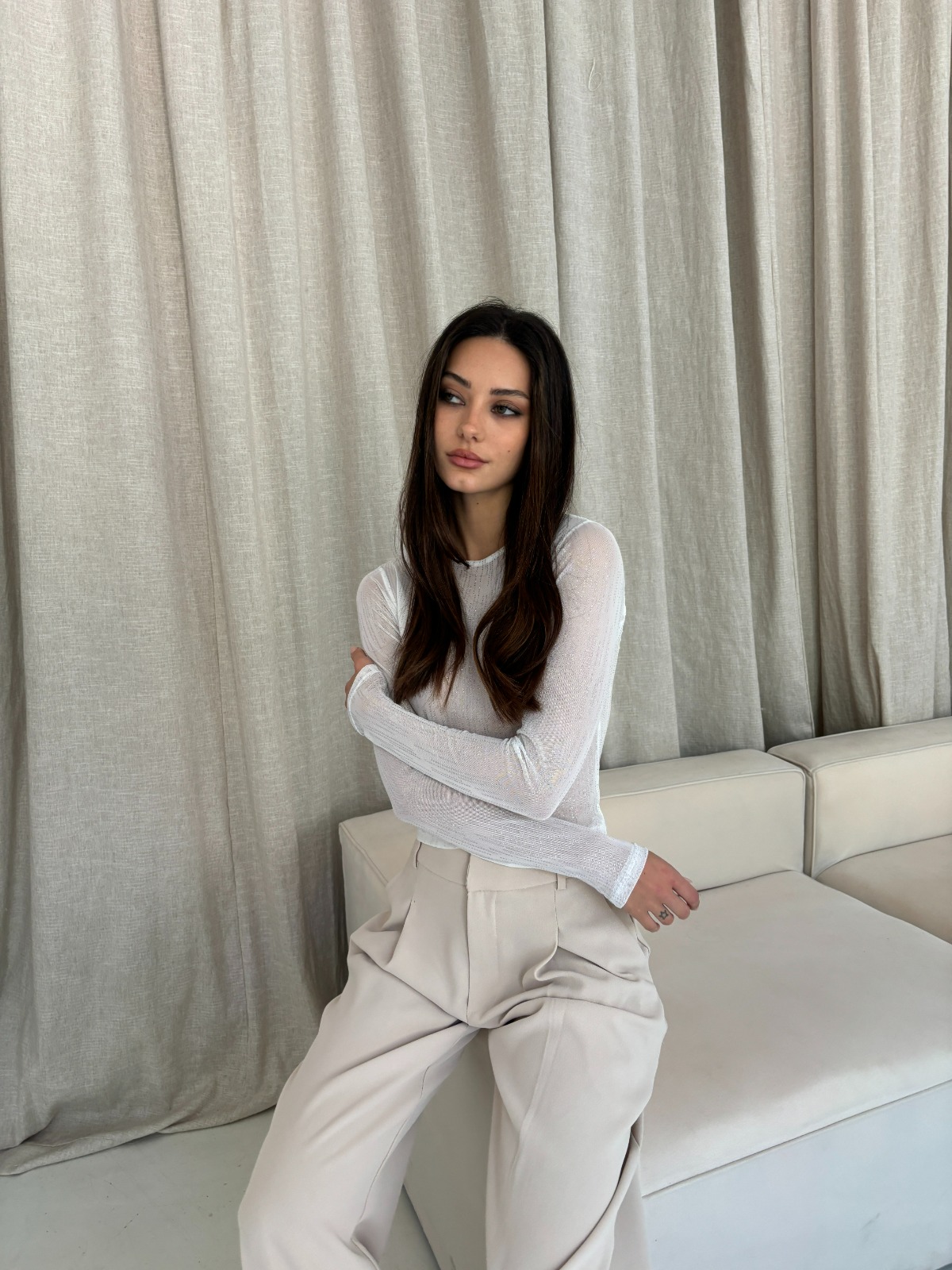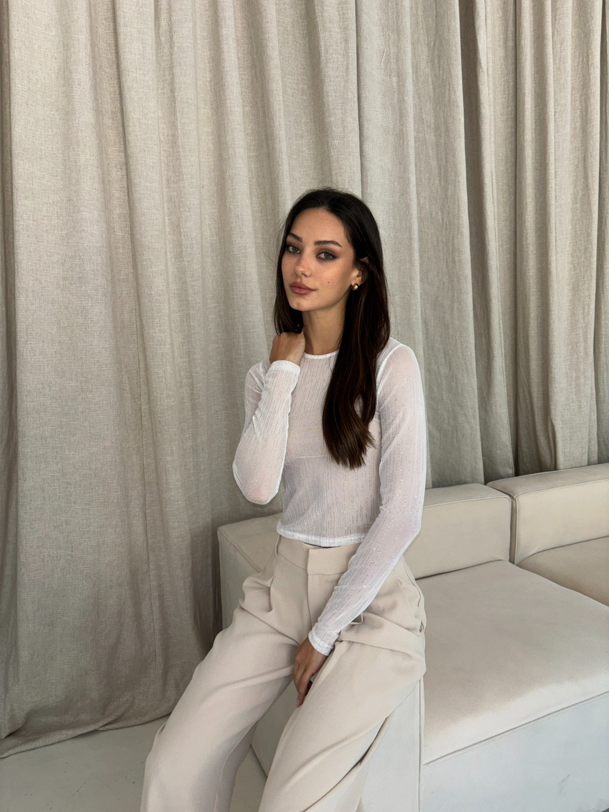 Remera manga larga de Tul con Brillitos