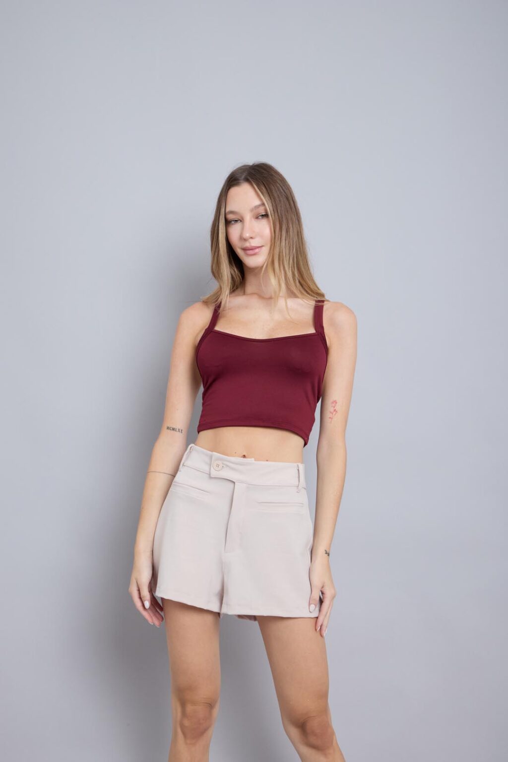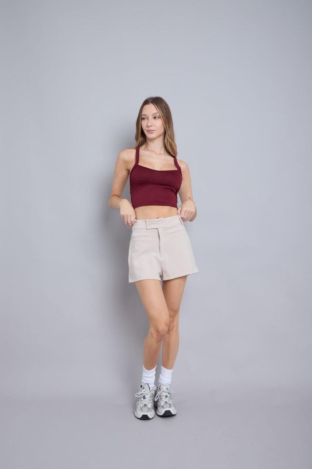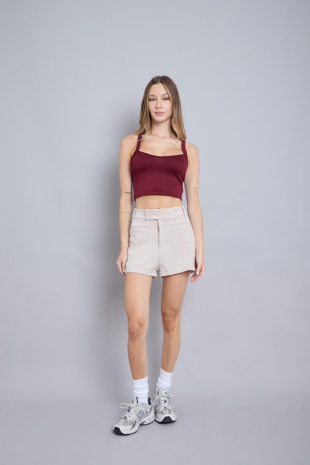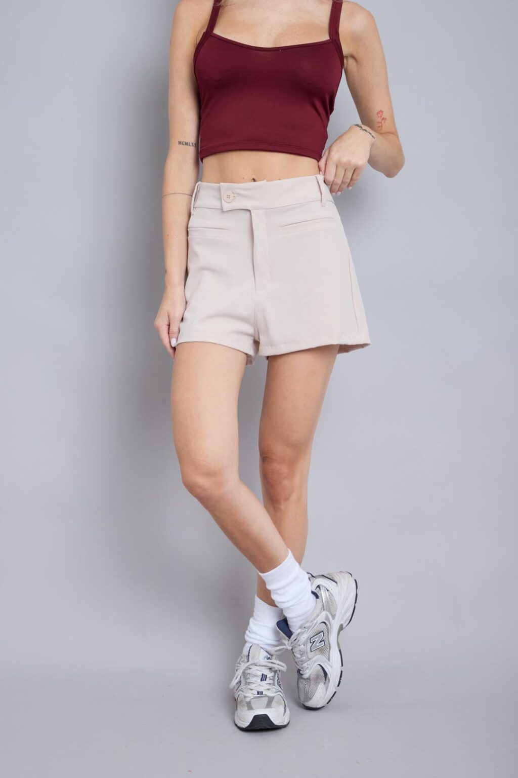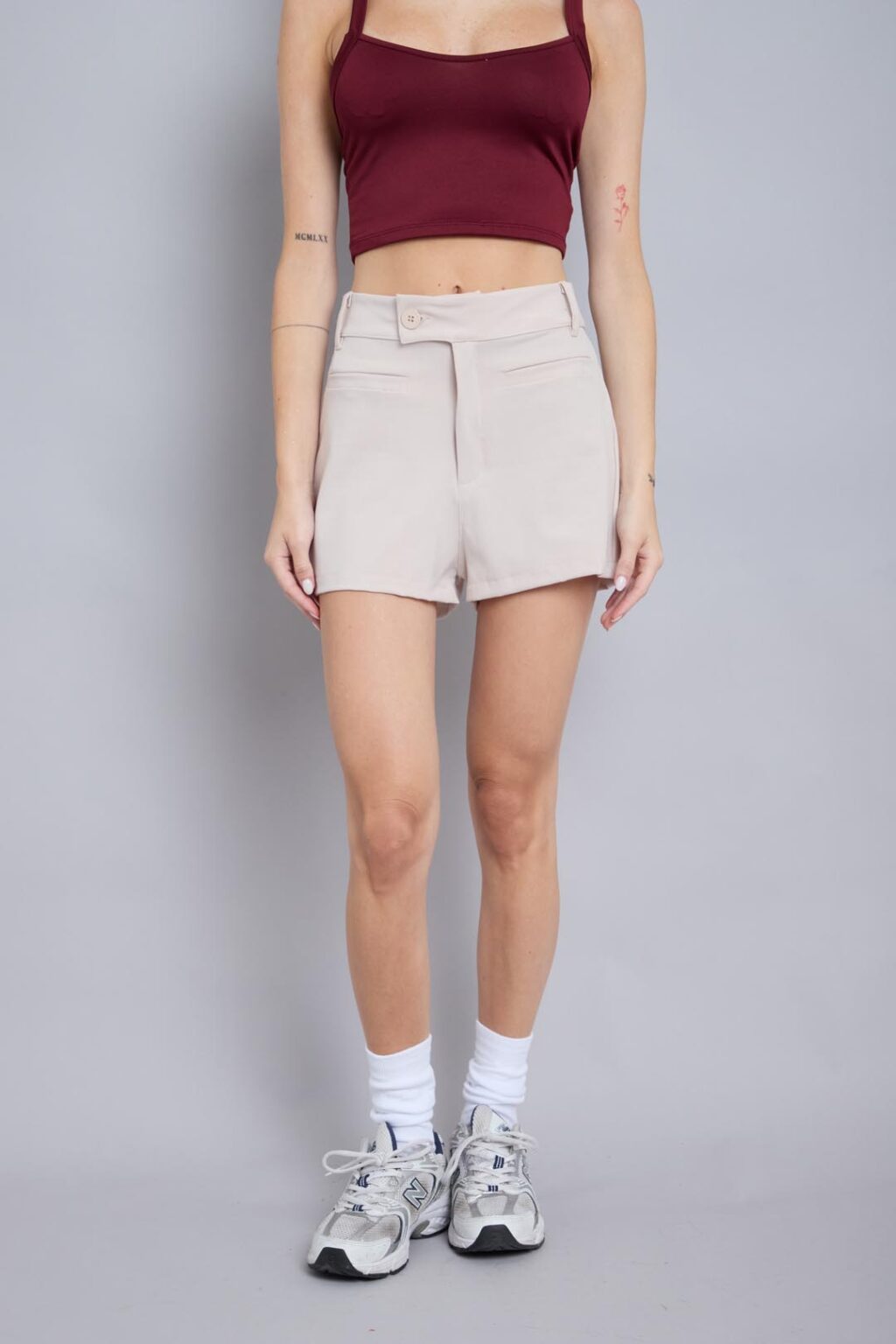 Bolsillo falso al frente, botón y cierre, pasacinto