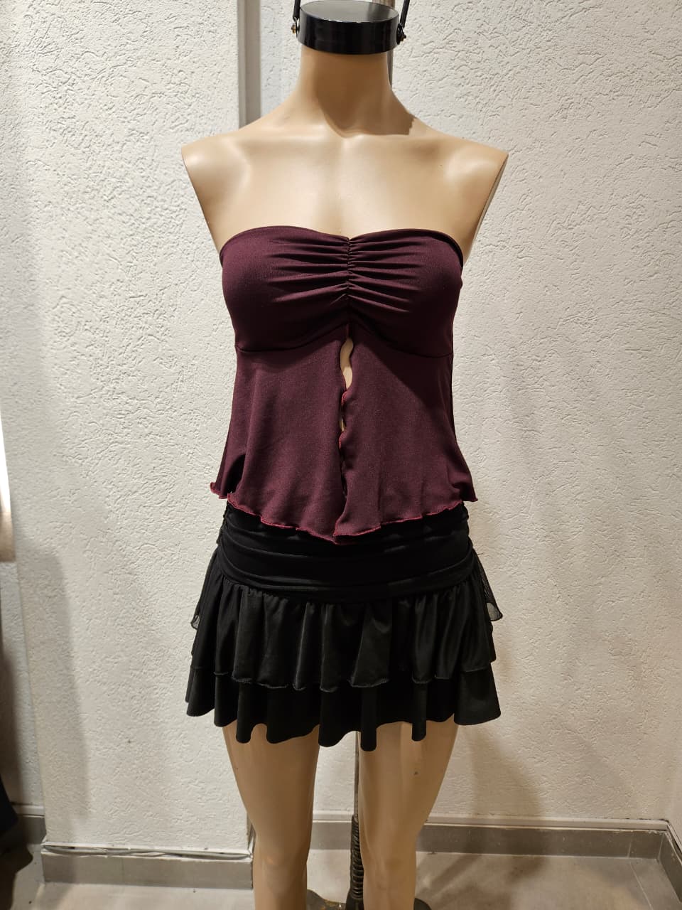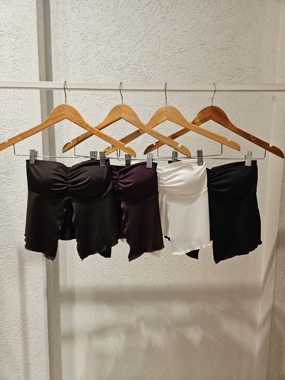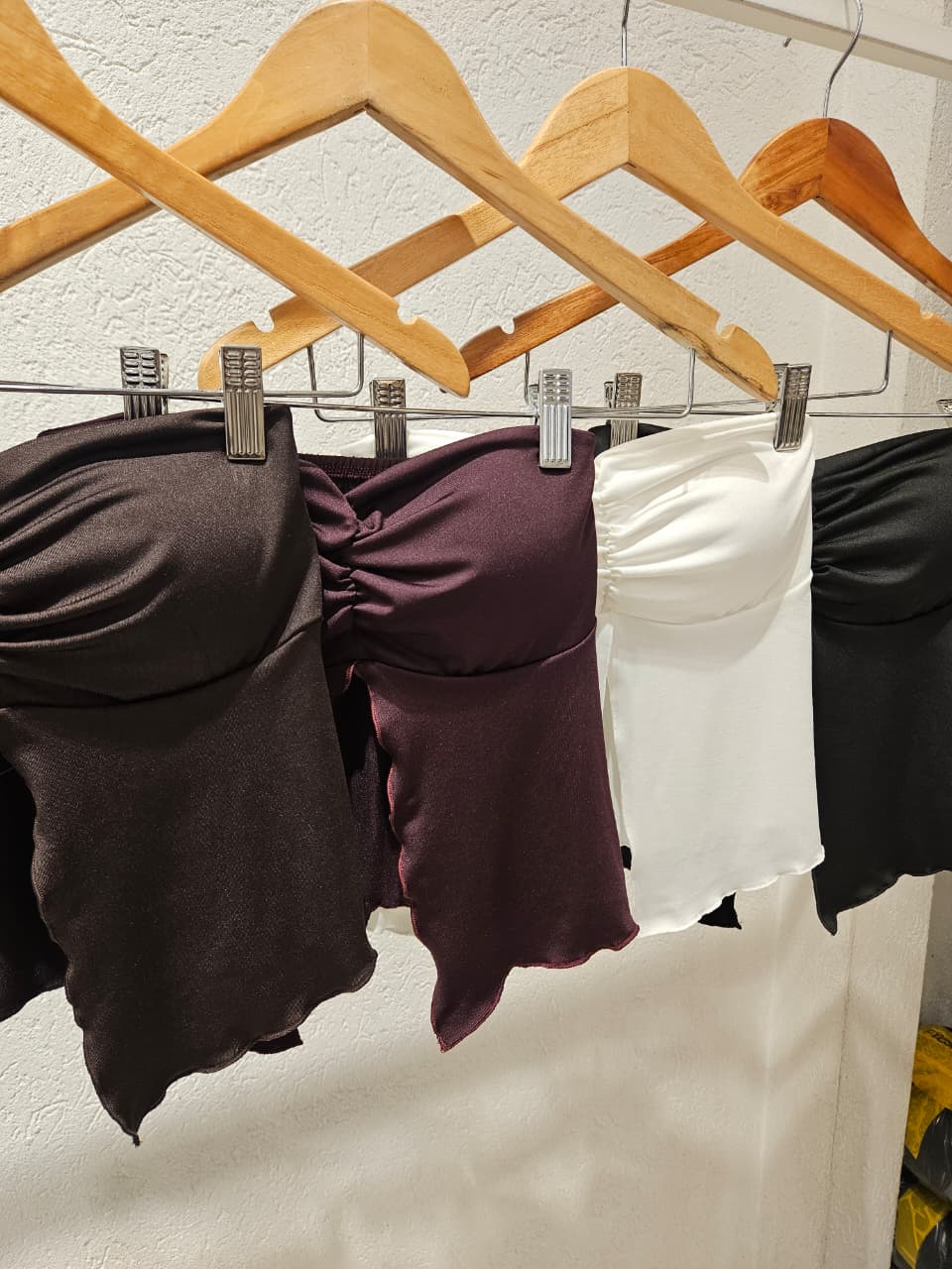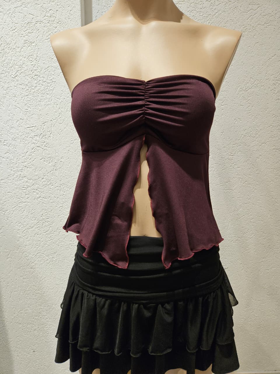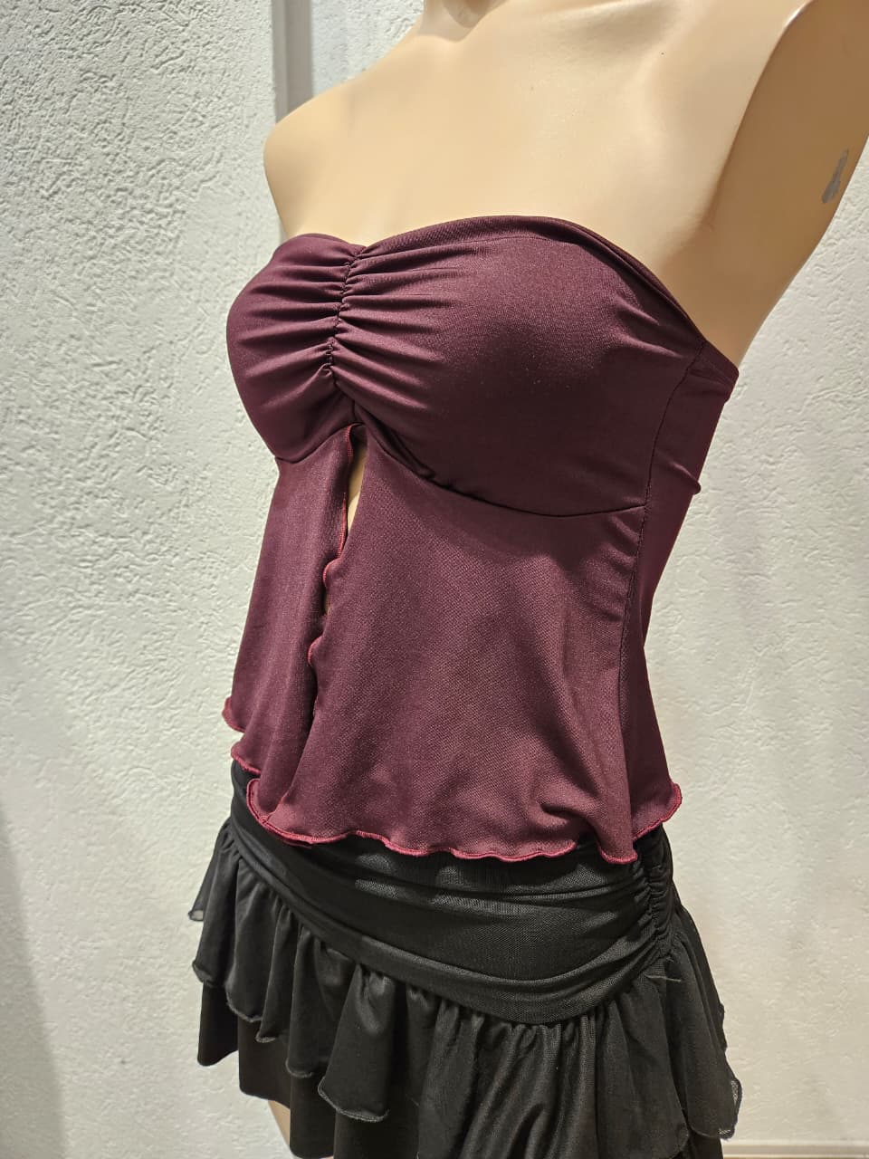 Top Strapless con copas, frunce en el escote