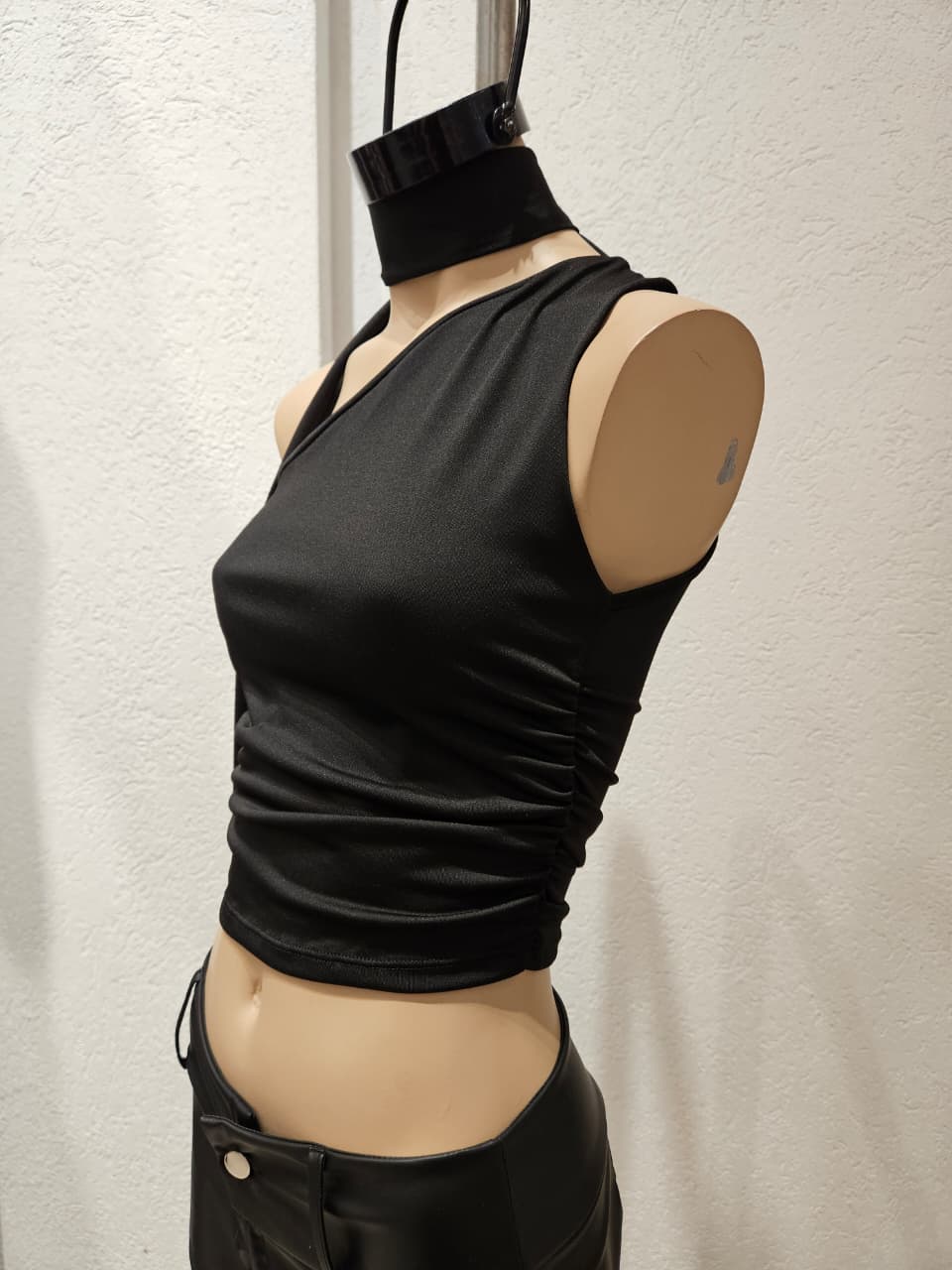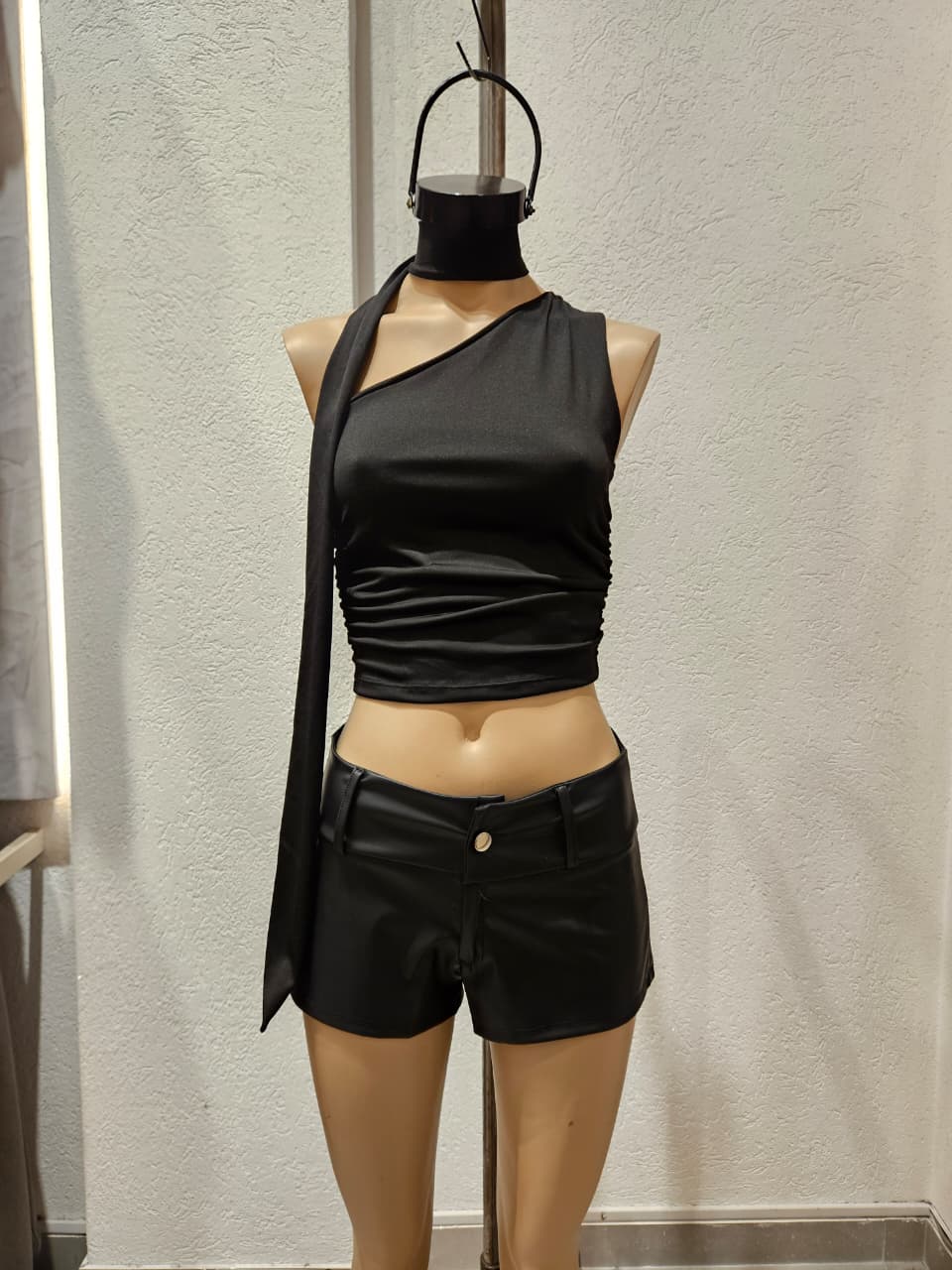 Top de 1 hombro con corbatin y fruncidos