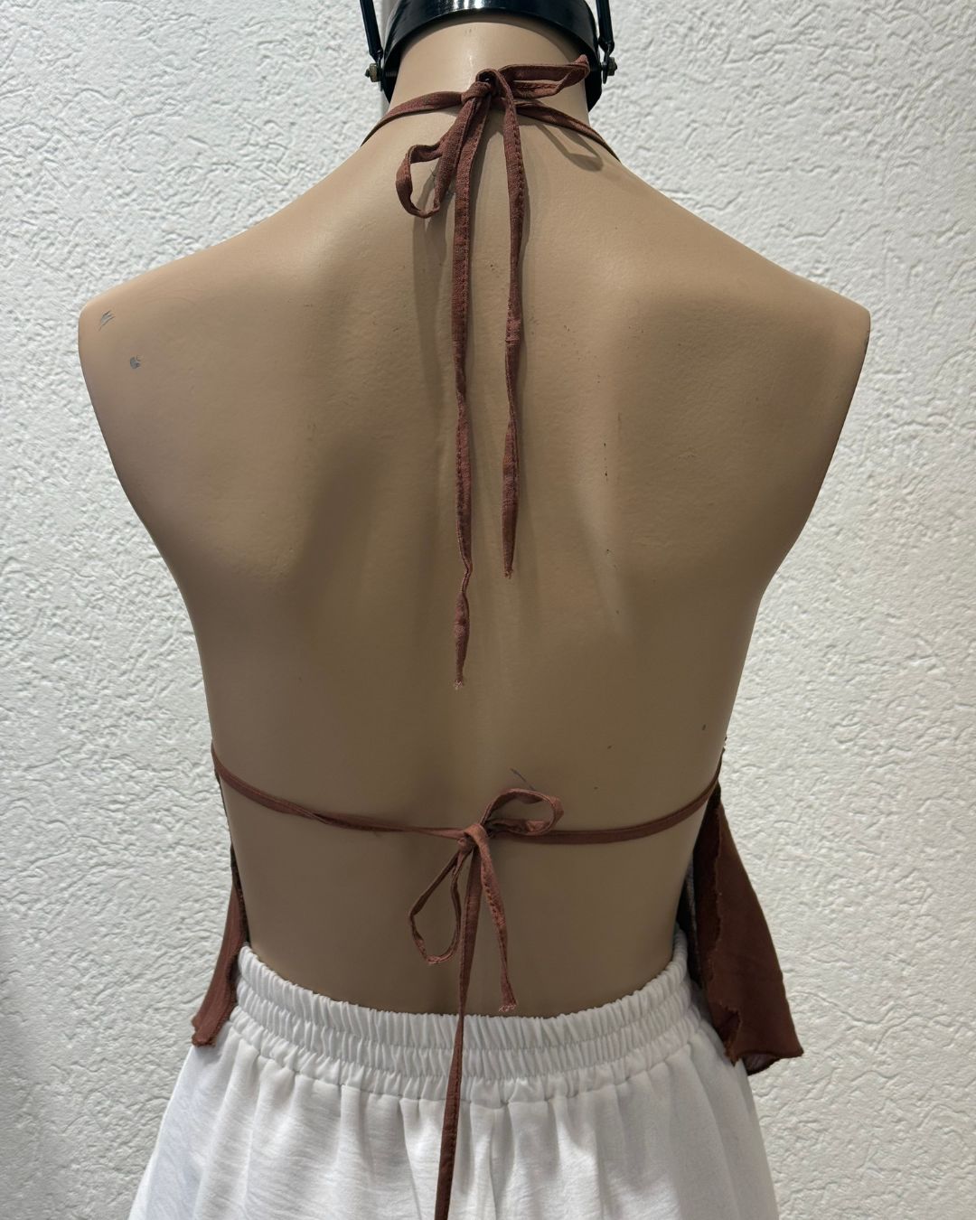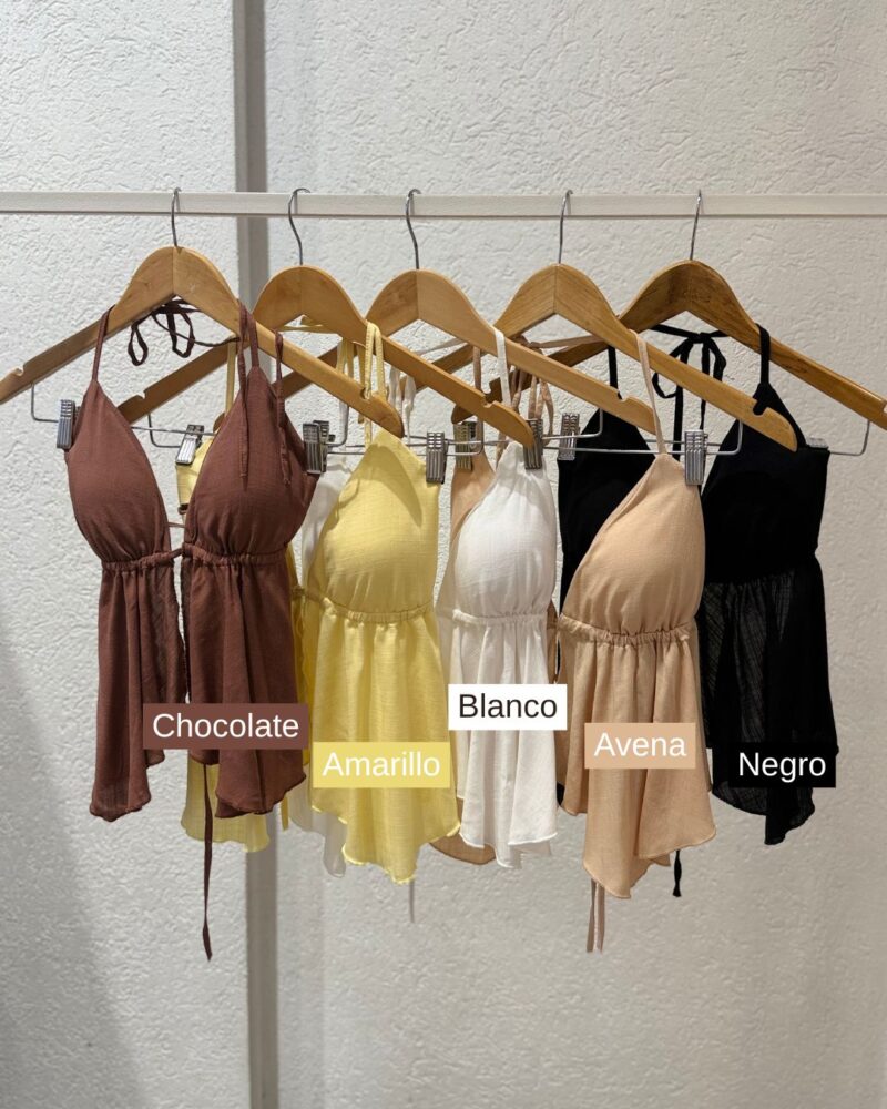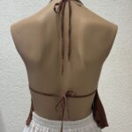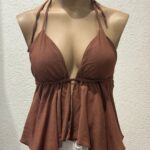 Top con taza, tira para atar en cuello y abdomen, volados.